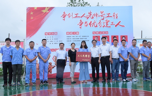 8月12日下午,集团公司工会副主席吴晓伍、女工委主任胡爱红一行莅临公司阜阳北路高架1标项目,验收“工人先锋号”创建工作并授牌。