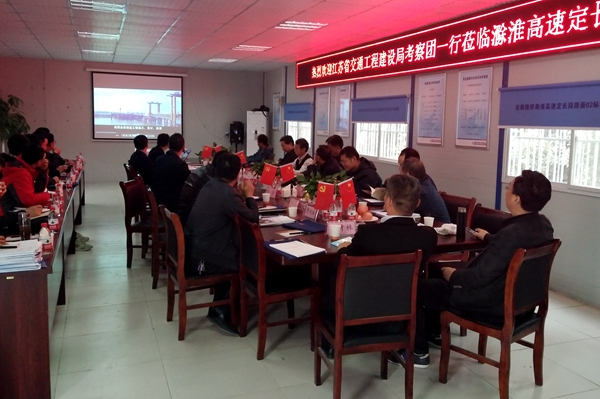 11月16日,江苏省交通工程建设局路面基层施工考察团到滁淮高速定长路面02标项目考察交流。