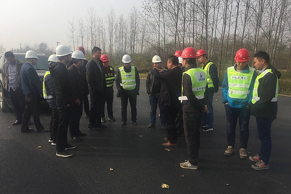 11月21日上午,合宁高速改扩建项目办副主任刘祥胜带领各监理、施工单位到公司承建的合宁05标观摩交流沥青上面层施工技术。