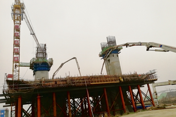 12月1日下午,裕溪河特大桥东岸13号主墩开始0#块混凝土浇筑施工。