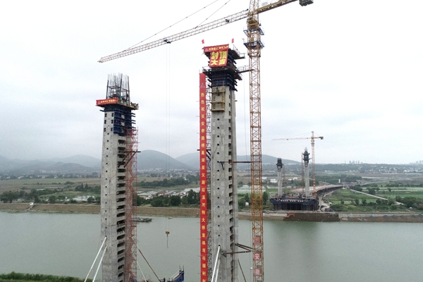 在塔柱建设过程中,参建人员努力克服了塔柱截面尺寸变化大、整体拼装模板施工难度大、安全管理风险高等困难,取得施工阶段性胜利,向大桥主跨合龙又迈出了坚实的一步。