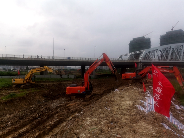 7月23日下午,安徽路桥抗洪抢险突击二队在结束巢湖北岸环湖大道(安徽创新馆至科技馆段)抢险固堤任务后,再战南淝河。这是该支队伍第三次在南淝河区域进行固堤抢险。7月18日以来,市政分公司抗洪抢险突击二队连续执行了5次防洪应急抢险任务,累计出动抢险队员170人次,各类机械设备30多台班次,加固环湖大道、南淝河堤坝多处。