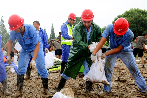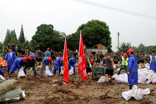7月23日,路面公司组建的防汛抗洪抢险救援队在完成同大圩保卫战后,又快速集结队伍,冒雨逆行,转战增援紫荆村小南河抗洪抢险,和正在参与抗洪抢险的解放军官兵共同投入战斗。连续6小时的冒雨奋战,共填装转运沙袋5000多只,成功完成强固堤坝任务,比预定时间提前了近两小时。