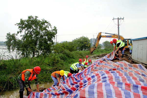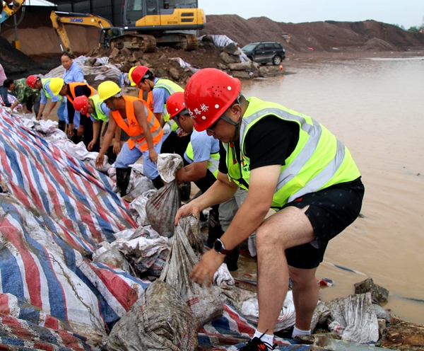 【抗洪抢险进行时】舒城三里河路面项目吹响防汛抢险生产自救集结号