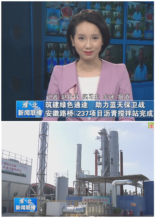 8月31日晚,《淮北新闻联播》栏目以《筑建绿色通途 助力蓝天保卫战》为题,报道了安徽路桥公司G237项目顺利完成沥青拌合站废气治理任务,将绿色、环保、文明施工落到实处,以实际行动助力淮北市打赢蓝天保卫战。