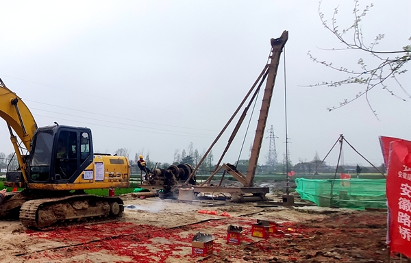 3月28日,引江济淮白湖特大桥项目经过前期充分准备,在相邻三个标段中,率先开钻首件桩基。