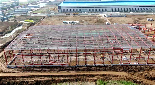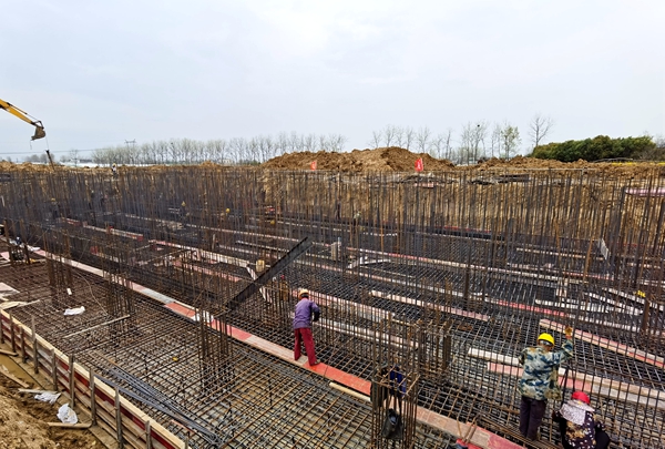 2021年1月4日,在基地蓝图绘就的基础上,厂房和办公生活设施项目部进场施工。他们克服了土地征收、连续多雨天气、拆迁困难、树木砍伐等不利因素,发扬“特别能吃苦、特别能战斗”的企业作风,解决了一个又一个棘手的问题,加班加点推进基地基础设施建设。截至3月底,吴山产业化基地项目3#管片生产车间地基基础、短柱、框梁施工完成100%;3#管片生产车间钢柱、钢梁等主体结构安装完成70%,拌合站主机、粉煤灰罐基础完成100%。