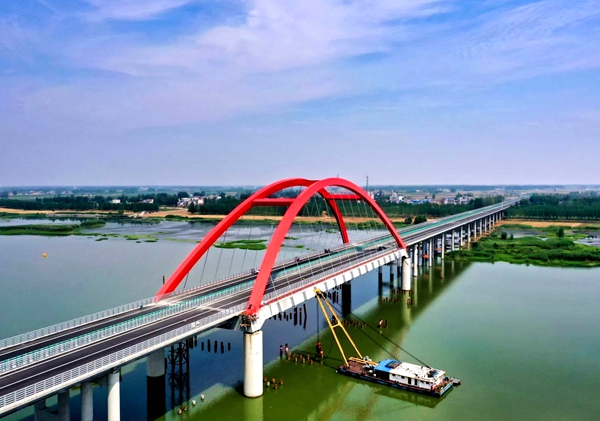 固蚌高速是安徽省县县通高速重点建设项目。在全省首次采用提篮系杆钢箱拱桥施工工艺,施工技术难度大、任务重。开工以来,在公司大力支持和精心帮扶下,项目坚持以党建为引领,克服疫情汛情等不利因素影响,围绕中心工作,坚持高质量、高标准、严要求,提前3个月完工,以优异的成绩向建党100周年献礼。