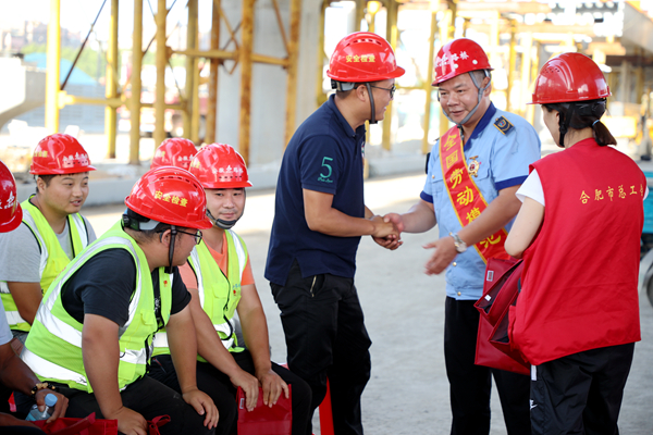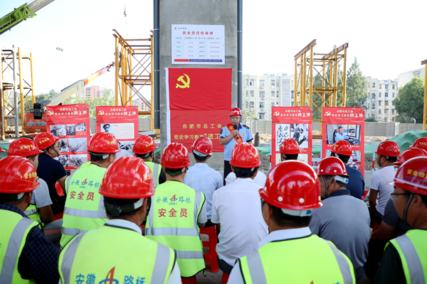 7月21日下午,合肥市总工会到畅通二环(西南环)项目举办党史学习教育“进工地”活动,全国五一劳动奖章获得者夏力为30多名工友作主题宣讲。