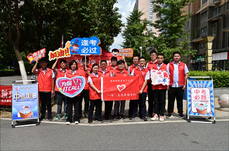 雨过高温紧随而至,志愿者们在考点前组建“心灵加油站”,为考生及家长准备充足的防疫物资、消暑药品和应急文具。为缓解考生家长的焦灼情绪,志愿者们积极与他们聊天谈心,分享着他们当年的中高考感悟,并化身“义警”疏导交通和人群,受到了交警、广大家长和考生们的点赞。在志愿者的感染下,数十名家长和社会人士也加入了志愿者队伍中,为护航中考助力,同时也带动了安徽路桥其他项目青年集体掀起了志愿服务的热潮。