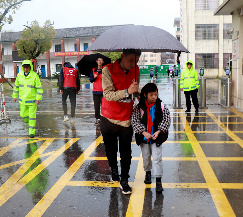 为切实做好当地校园及周边的交通安全保障工作,今年以来,安徽路桥道路分公司江西吉康改扩建C1标、上饶东枢纽互通项目和省内G318广德项目“一路”志愿者服务队主动联合当地交警持续开展“护苗”行动,为学生出行撑起一把“平安伞”,为蜂拥而至的学生们开辟一条“绿色通道”。逢阴雨天气时,志愿者们纷纷为孩子们撑起雨伞,一个个将他们送过马路或带到家长身边才放下心来,并引导青少年学习正确的交通安全规范,构成了一道道亮丽的“红色”风景。