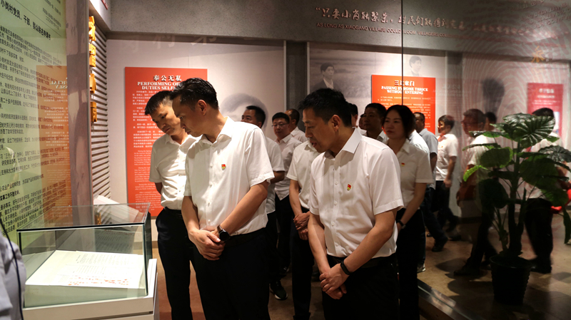在大包干纪念馆,大家认真观看图文资料和原景复原模型,深入了解小岗村掀起中国农村改革序幕的历程,深切感受改革开放四十多年来小岗村发生的翻天覆地变化,进一步感悟了“改革创新、敢为人先”的小岗精神。在沈浩同志先进事迹陈列馆,大家仔细观看了沈浩同志在小岗村工作和生活过程中留下的文字、图片和实物资料,深入了解了沈浩同志“两任村干部沥血呕心带领一方求发展,六载离家鞠躬尽瘁引导万民奔小康”的感人事迹,真切感受到沈浩同志扎根基层、锐意进取、一心为民、公而忘私的精神品质。在陈列馆南广场,全体党员重温了入党誓词。