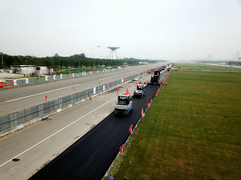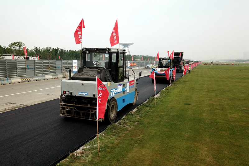 6月23日,记者从安徽新途建材有限责任公司(以下简称安徽新途公司)获悉,在骆岗中央公园片区,由安徽省路桥公司承建的园博园机场跑道修复及相关配套项目2标成功应用无人摊压机群,这是时隔十日安徽新途公司在青海路项目引入无人摊压技术后的又一次实践。