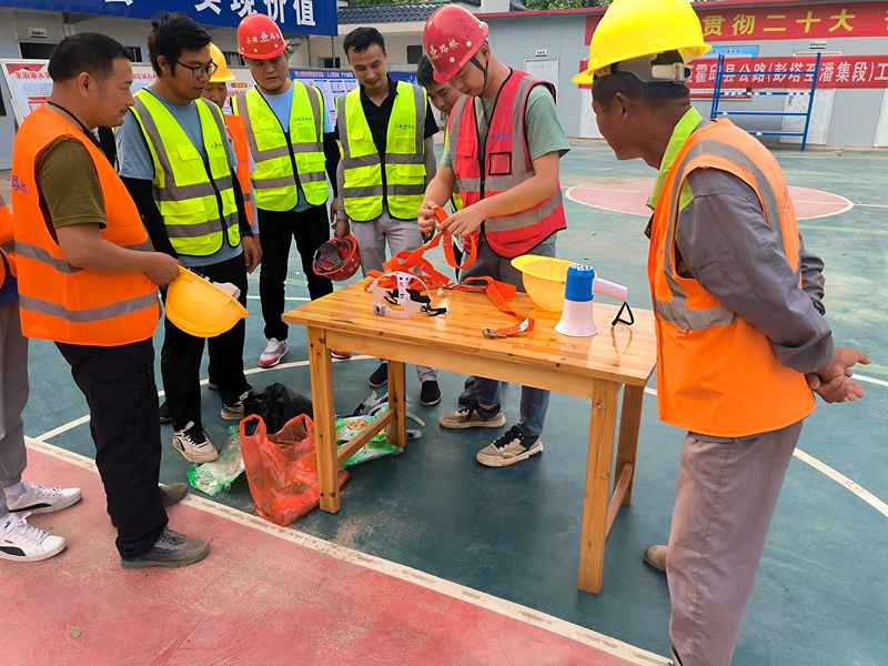为更好地防范夏天雨水量较大易形成局部内涝的问题,项目部于5月中旬开展防汛应急演练,用时近2小时,主要围绕暴雨、急洪水突发状况下应急预案响应、执行、实施等科目展开,提高了项目管理人员和施工队伍在汛情发生时的应对能力。同时,为进一步加强作业人员的安全技能,熟练使用劳动防护用品,有效面对突发情况,项目部于6月8日组织一线作业人员开展安全技能比赛:如何正确组装安全帽及安全带并使用、模拟火灾场景运输灭火器材等,真正做到“人人讲安全、个个会应急”。