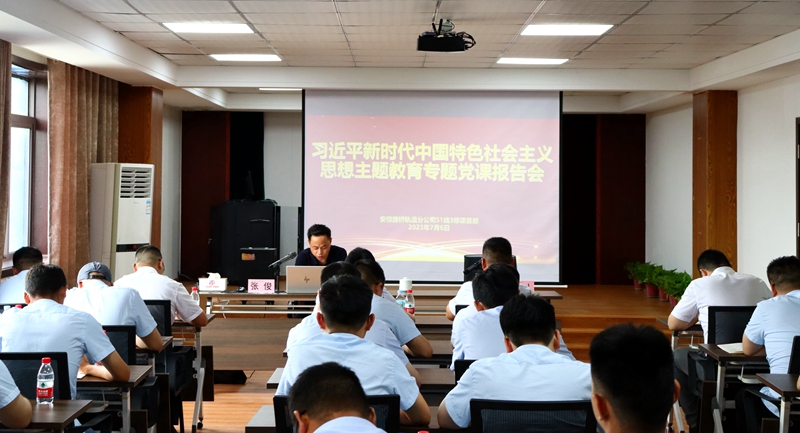 经营公司负责同志,轨道分公司领导班子、后勤机关部门负责人及项目部全体党员、职工参加党课报告会。