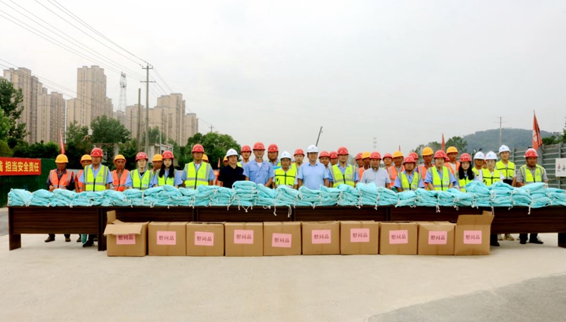 7月19日下午,合肥市重点局副局长郑浩带队到G312合六路(新桥大道-侯店路)工程二标开展“送清凉”活动,为现场一线建设者送来防暑降温物资,并详细了解项目防暑降温措施落实情况,就科学防暑、加快生产建设等工作提出要求。
