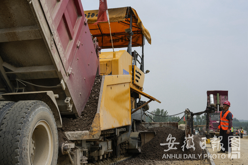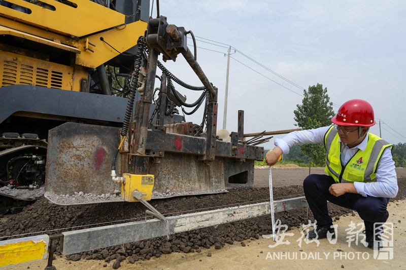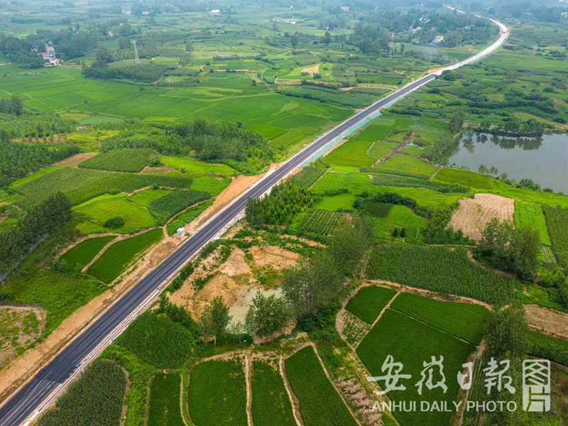 7月25日,拍摄的由安徽路桥承建的霍邱县产业振兴公路。该项目全长 19.245公里,目前路基工程已完成,正在全力推进路面施工阶段,计划2023年10月完成项目整体建设任务。建成后将解决沿线5个乡镇30万群众出行问题,带动沿淮、沿淠乡镇产业发展,巩固脱贫成效,助力乡村振兴。
