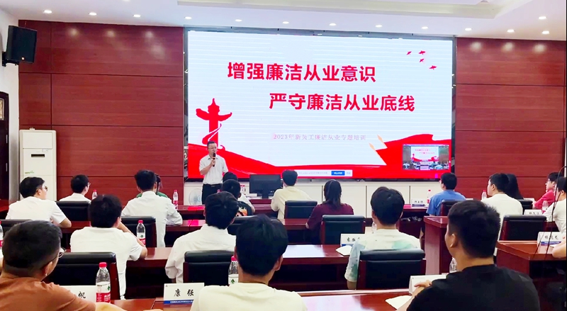 公司纪委以《增强廉洁从业意识 严守廉洁从业底线》为主题,从当前党风廉政建设和反腐败斗争形势、特点入手,结合违纪违法典型案例开展警示教育,对《中国共产党纪律处分条例》《安徽路桥员工廉洁从业负面清单》等制度规定进行针对性的解读。教育引导新入职员工要加强学习,坚定理想信念,筑牢廉洁思想防线;要树牢规矩意识,严守“底线”,不越“红线”,不碰“高压线”;要永葆清廉初心,自觉拒腐防变,干净做事,清白做人,助力公司高质量发展。