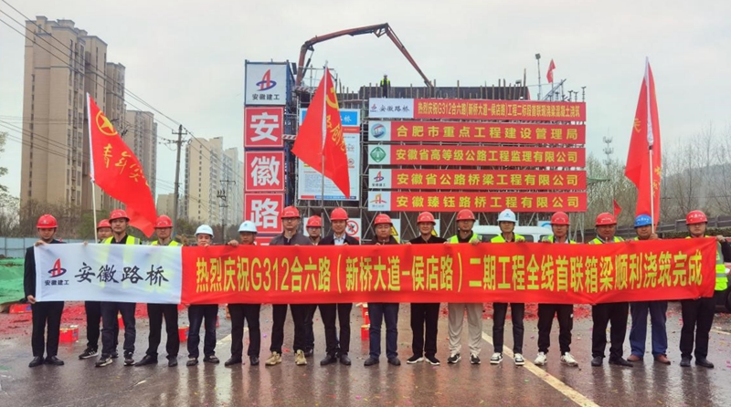 项目坚持以实干出成绩,向时间要效益,以“开局即决战,起步即冲刺”的姿态,跑出施工加速度。首根桩基开钻、首根墩柱浇筑、首座承台浇筑、首联现浇箱梁浇筑……项目工期以及形象进度始终领跑全线。建设过程中,合肥新闻联播以《安徽路桥G312:无惧“烤”验 用汗水筑就城市之美》为题关注项目“高温下的坚守”,中安在线、合肥日报、合肥晚报等主流媒体也高频聚焦项目建设进展。