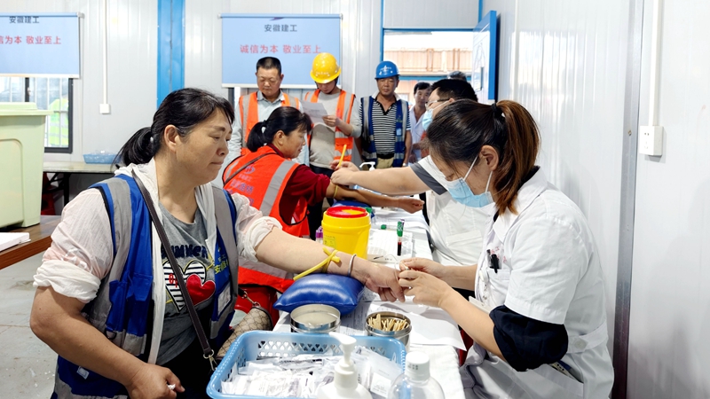 安徽省建设建材工会“农民工免费体检”活动走进桃花科创园项目 发布时间:2023年09月07日 来源:市政分公司 发布人:党委工作部 作者:周健 浏览:3046次 9月6日至7日,安徽省建设建材工会走进桃花科创产业园项目,免费为140余名农民工送上健康体检。 省建设建材工会(省住建厅文明办)主任、一级调研员程德旺,公司党委副书记、工会主席王胜利等参加活动。