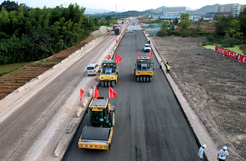 路基施工在艰难中一天一个样地推进。为保质保量履约,项目在用地批复后迅速开始道路清表和土方填筑施工,以“勇当先锋”的姿态抢抓进度,增加双倍设备,队伍人员实行“白+黑”分班作业,昼夜不停加紧施工。各部门和现场各个作业面始终保持着有序衔接,解决困难及时,人机穿梭有序。经过共同努力,项目仅用不到60天时间就完成标尾路基施工任务,提前20天进入路面基层试验段摊铺。县领导多次到项目调研,对现场进展表示肯定,并给予“全力以赴保工期,以实际行动展现国企速度”的评价,项目也接连受到业主单位通报表扬。