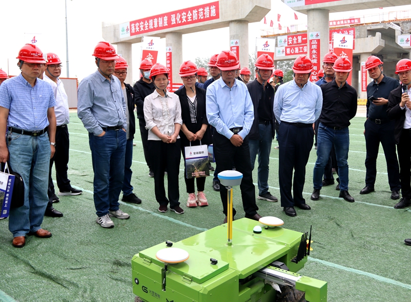 观摩团实地观摩了阜南南互通施工现场,详细了解了桥梁标准化建设、安全管理、工艺创新等工程质量安全管理和提升方面的先进做法,参观了公路测量机器人操作流程,对项目精细化施工和品质工程创建工作予以肯定。