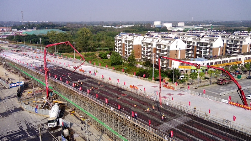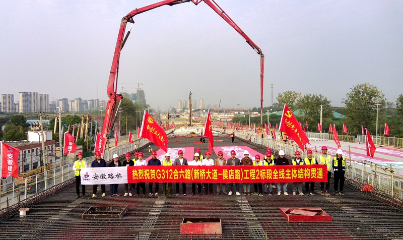10月14日上午,G312合六路2标项目“百日攻坚大会战”专项竞赛传来捷报,伴随着小蜀山西路上跨桥最后一联现浇箱梁顶板顺利浇筑,项目主线顺利实现贯通。