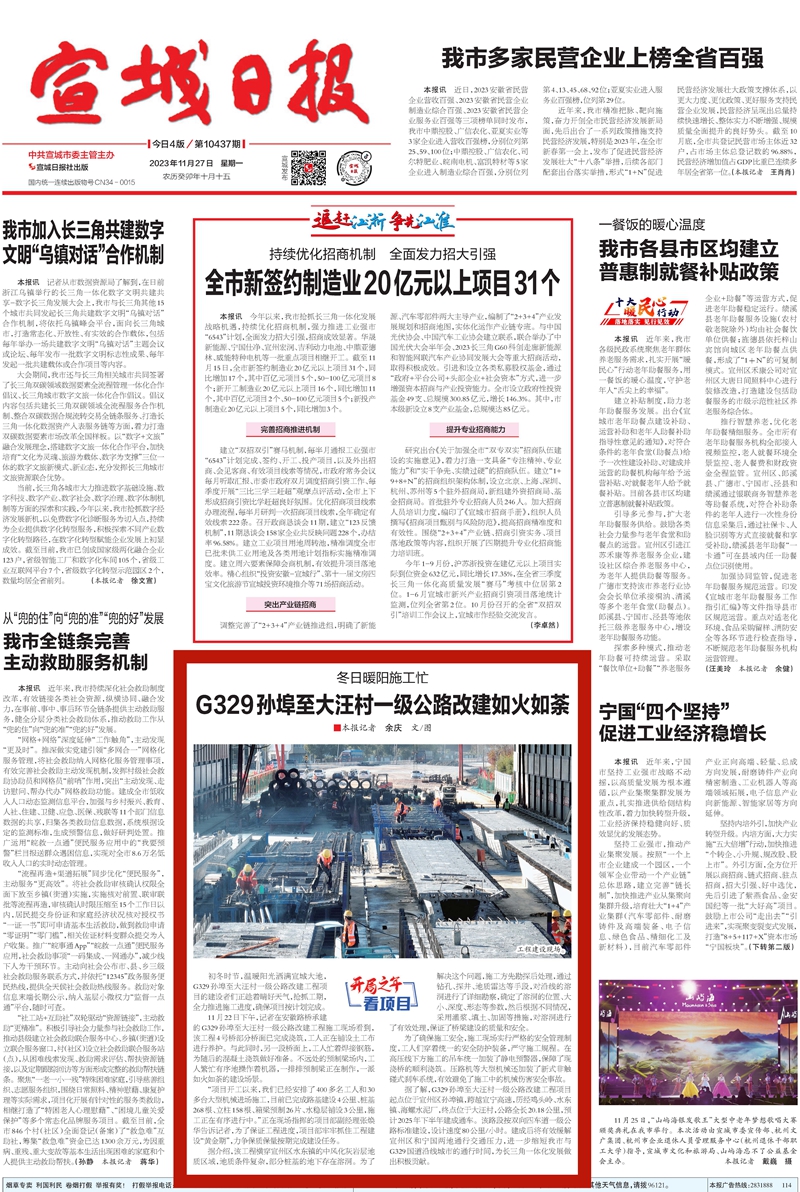 【名媒聚焦】宣城日报:冬日暖阳施工忙 G329孙埠至大汪村一级公路改建如火如荼