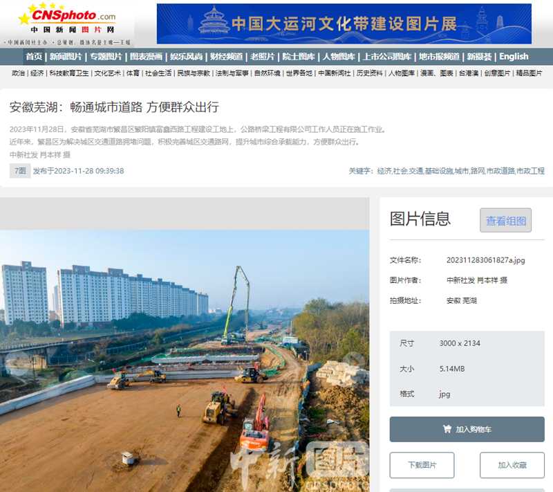 11月28日,中国新闻图片网、人民网、安徽新闻网等多家央媒和省级媒体关注公司承建的繁昌区富鑫西路项目工程建设,以图组形式聚焦项目桥梁混凝土浇筑和路基施工。