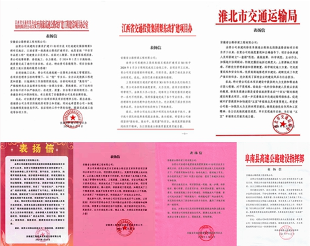近日,公司多个高速公路重点项目收到属地主管部门、业主单位的来信表扬。