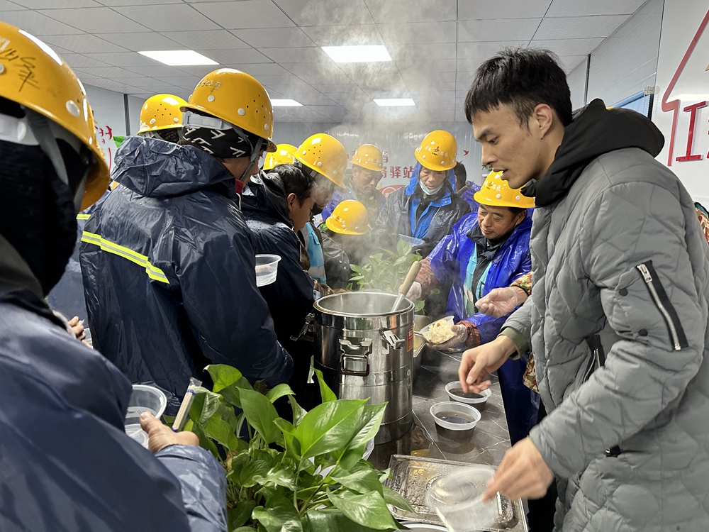 伴随着寒潮来袭,为积极应对降雪和断崖式降温天气,确保全体建设者温暖过冬,近日,公司各项目精心打好冬季送温暖“组合拳”,为一线建设者们及时发放防寒服、棉鞋和手套等防寒防滑物品,在寒风中为他们送去姜汤、热水,在深夜里准备好热汤、热饭......用浓浓的“家文化”驱散寒冷,让建设者们在冬日里暖身又暖心,为全面冲刺年度目标任务保驾护航。