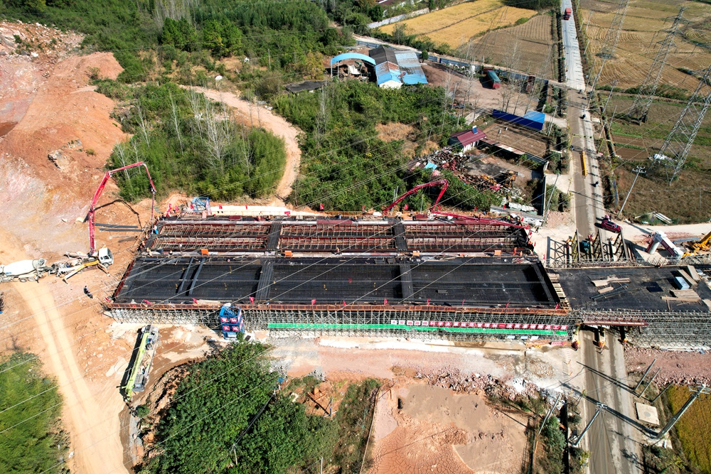 工程建设制胜在关键点,项目部始终坚持把关键节点工程攻坚作为“头号工程”。水东四号桥位于象山脚下,横跨乡道施工,施工组织难度大,安全风险高。项目积极组织工作专班,通过优化方案、细化分工、倒排工期和现场监督等措施,并积极对接当地政府和有关电力部门,多番实地考察、测量,保障施工过程的有序性、高效性和安全性。2023年11月8日上午,水东四号桥首件现浇梁顺利浇筑完成,标志着项目关键施工节点取得突破性进展。