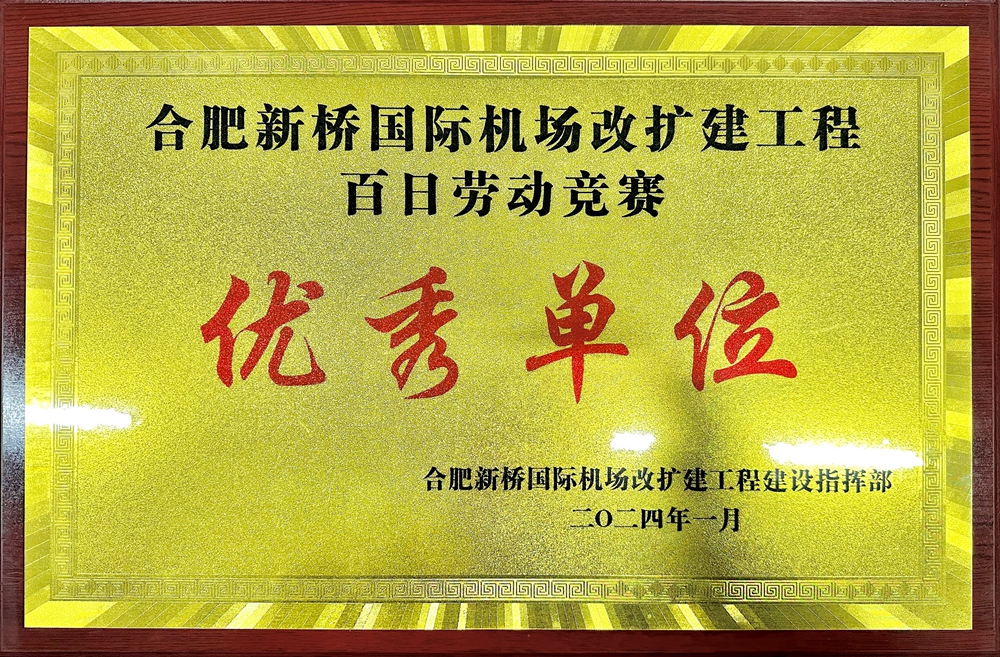 近日,从合肥新桥机场改扩建工程项目指挥部传来喜讯,公司承建的合肥新桥国际机场综合交通中心项目荣获“合肥新桥国际机场改扩建工程百日劳动竞赛优秀单位”,公司党委委员、副总经理韦秀刚代表公司领奖。