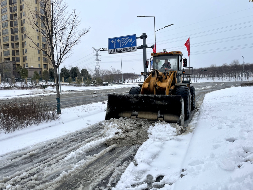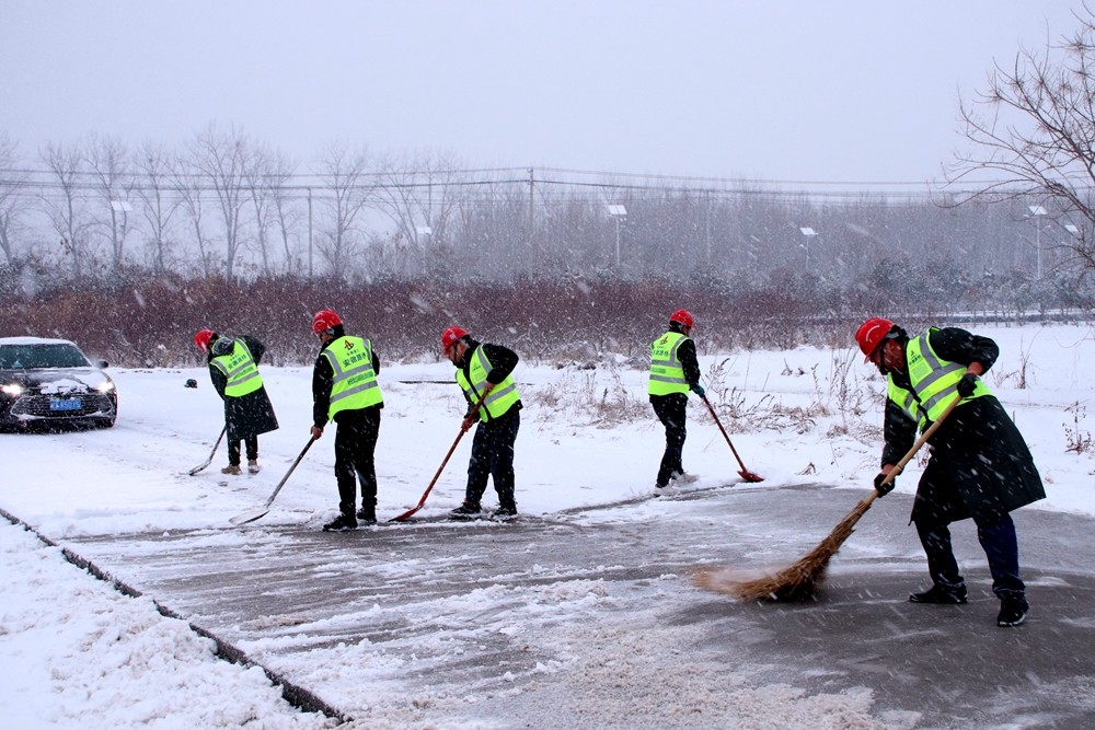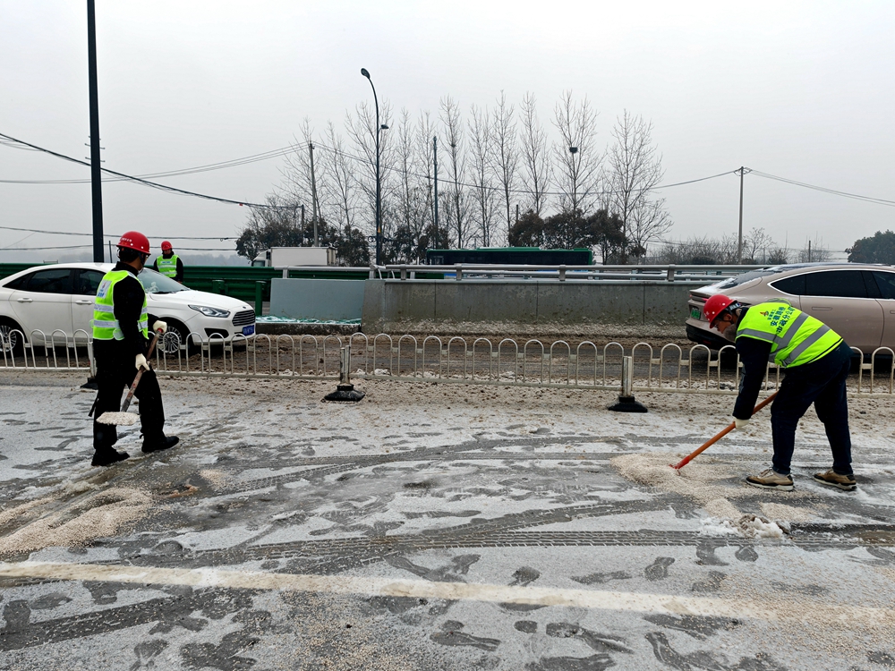 市政分公司G312合六路二标项目组织项目职工在交通要道撒放融雪剂并开展除雪志愿服务。