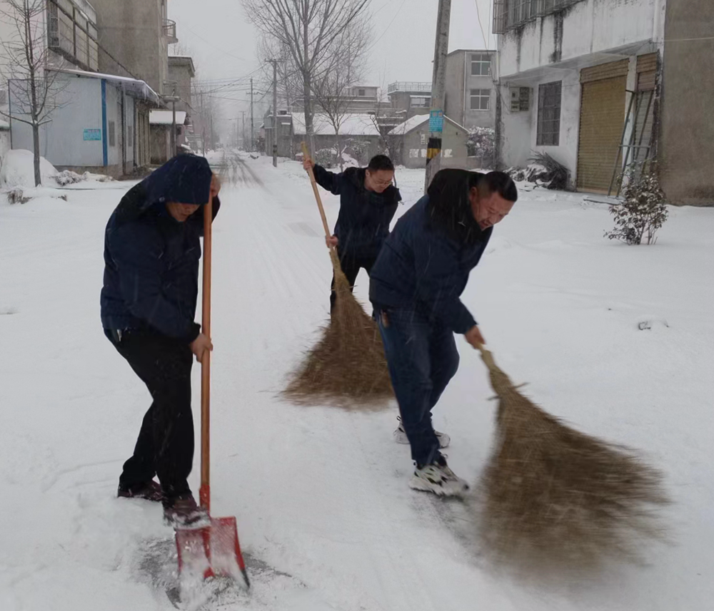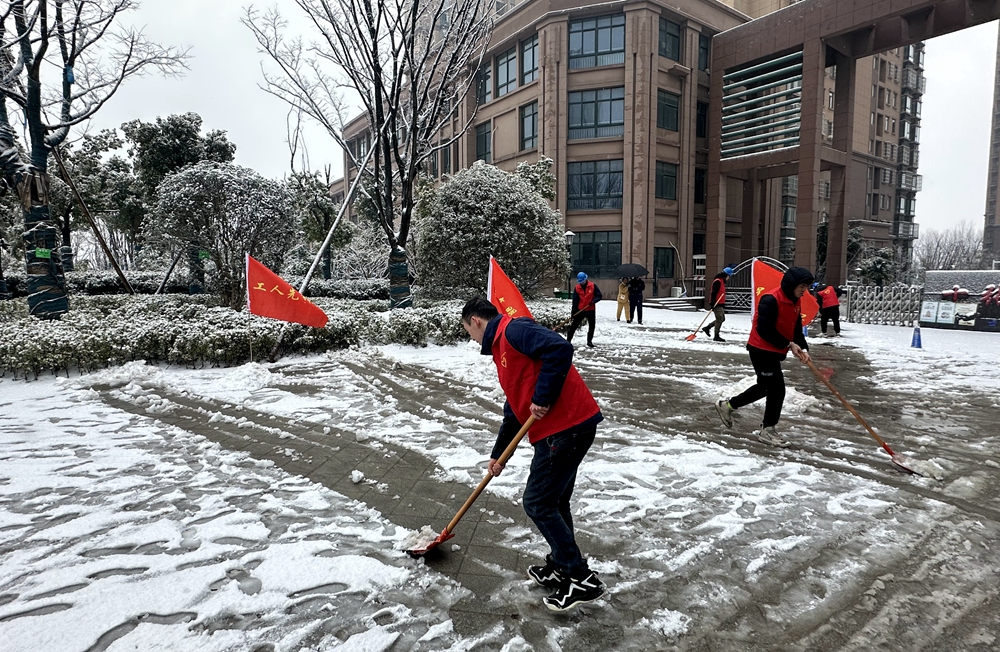轨道分公司合肥新桥机场S1线3标项目部组织盾构志愿服务队在十张新村、岗集中心卫生院周边铲雪除冰,为居民安全顺畅出行增添保障。