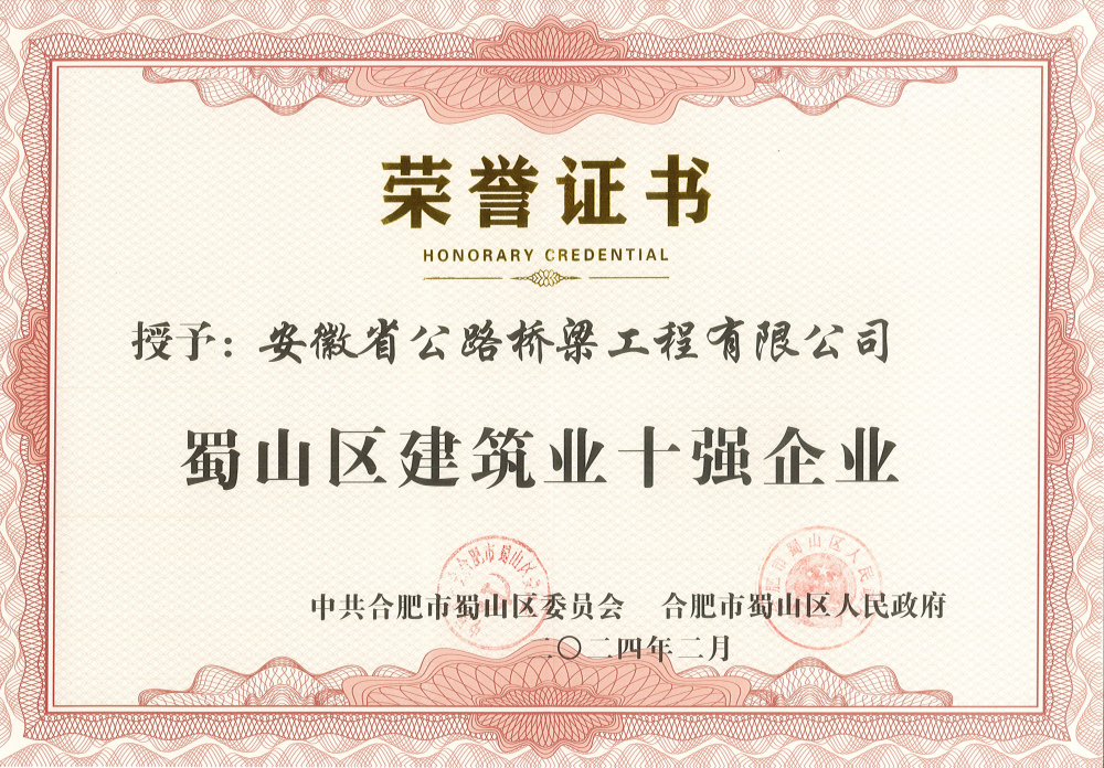 近日,蜀山区发布“建筑业10强企业”榜单,公司位列首位。