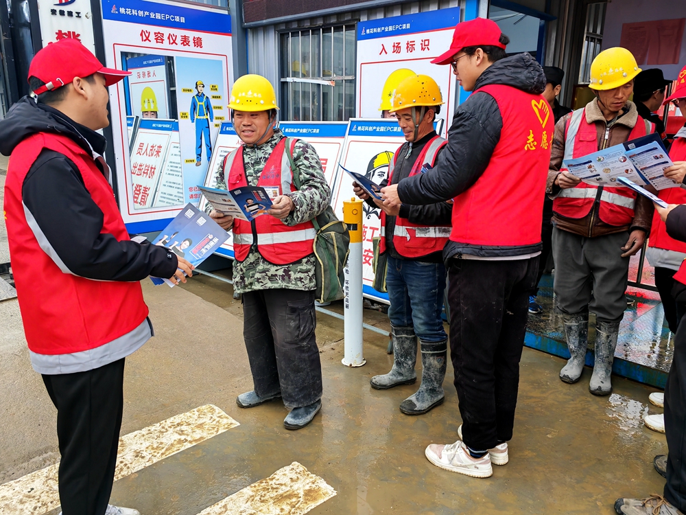 桃花科创产业园项目团支部走进工友群体,开展普法志愿宣传宣讲活动,旨在提升工友们的法律意识。
