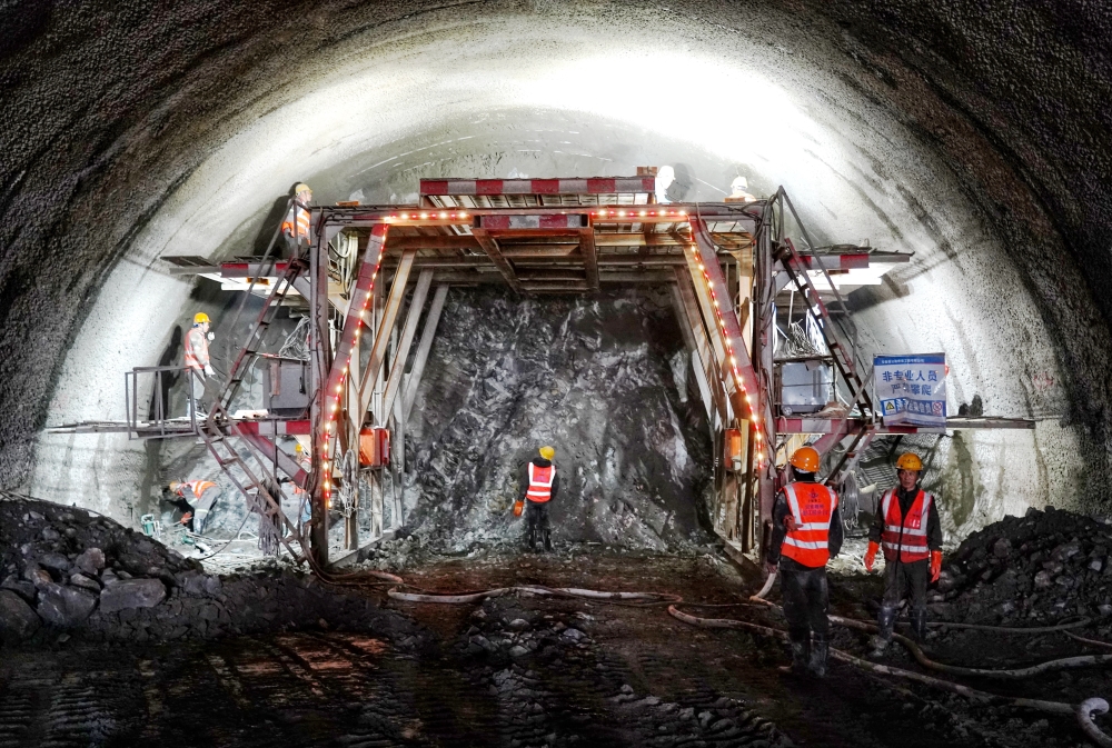 当天清晨,薄雾如轻纱般笼罩着大地,江梓山山腰的隧道口处,已是一片热火朝天的繁忙景象。巨大的机械臂在晨光中挥舞,在施工现场划出一道道刚劲有力的弧线。工人们身着醒目的安全服,手持风枪钻,熟练而专注地操作着。随着爆破孔眼逐个成孔以及炸药装填工作稳步推进,爆破前的准备工作逐渐进入尾声。