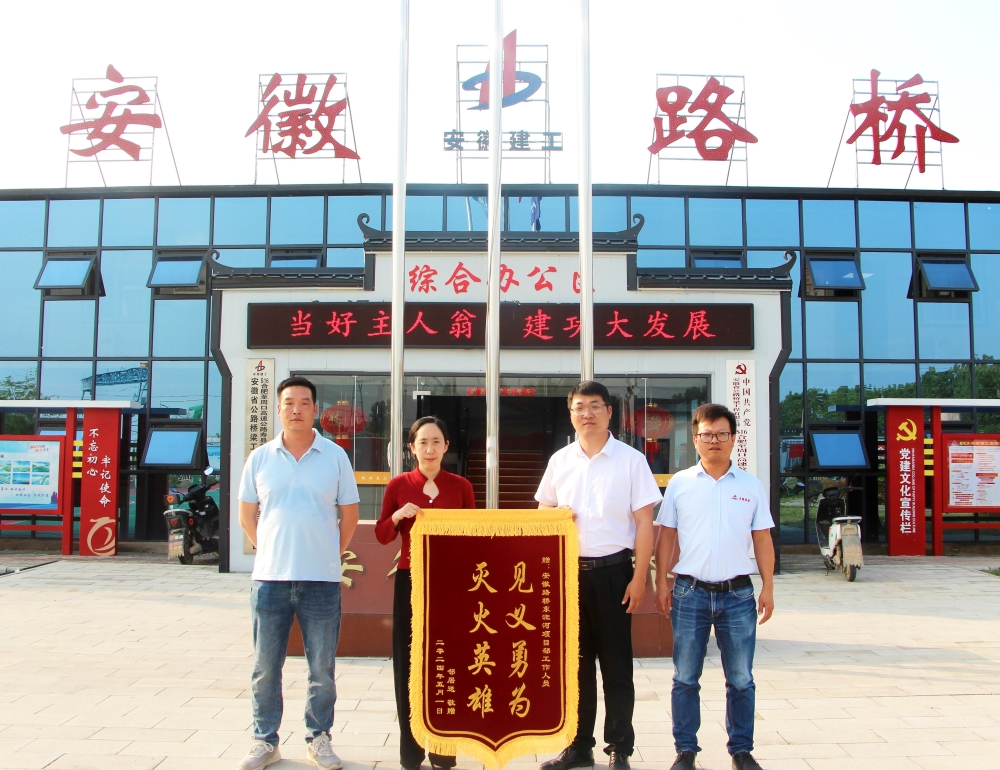 5月6日,一面绣有“灭火英雄,见义勇为”的鲜红锦旗被郑重地送到安徽路桥合周高速4标东淝河大桥项目部,这是当地村民对项目部英勇救火的深深谢意与高度赞扬。