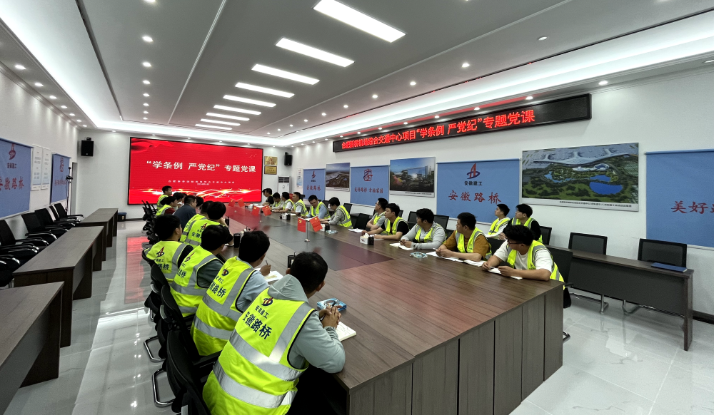 合肥新桥国际机场综合交通中心项目党支部召开“学条例 严党纪”专题党课。党支部书记从《条例》修订的重要意义、修订的主要内容、运用的几个关键、违反《条例》的典型案例等方面,深入阐释了“全面从严治党,就要把党的纪律和规矩挺在前面”的深刻内涵,为全体职工上了一堂生动的党纪学习教育党课。