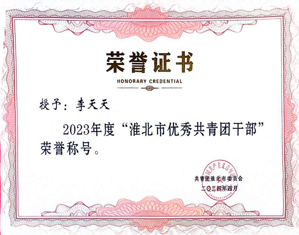 近日,从共青团淮北市委员会传来消息,公司承建的徐淮阜高速淮北段项目荣获“淮北青年五四奖章”集体,项目职工李天天、陶青松分别荣获“淮北市优秀共青团干部”和“淮北市优秀共青团员”称号。