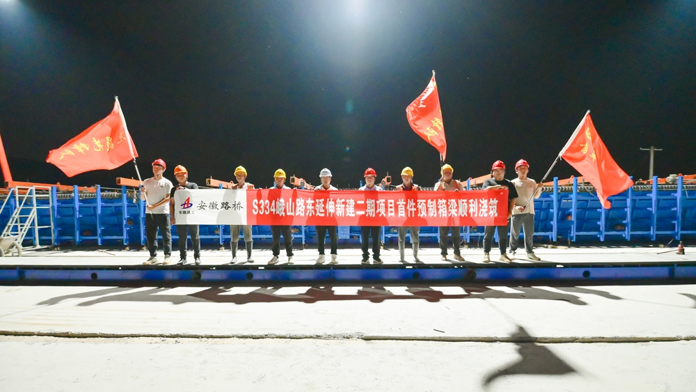 6月14日晚,随着最后一方混凝土入模,S334峨山路东延伸新建二期工程项目全线首片预制箱梁顺利浇筑,标志着项目箱梁预制工作正式拉开帷幕。