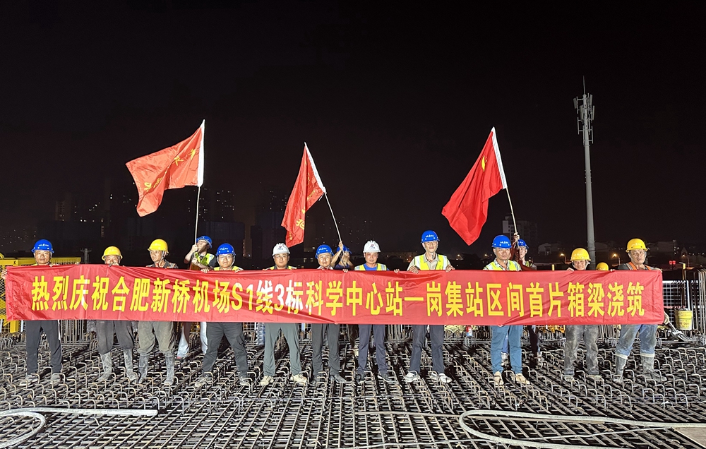 【路桥“竞”行时】合肥新桥机场S1线3标科学中心站-岗集站区间首跨箱梁完成浇筑