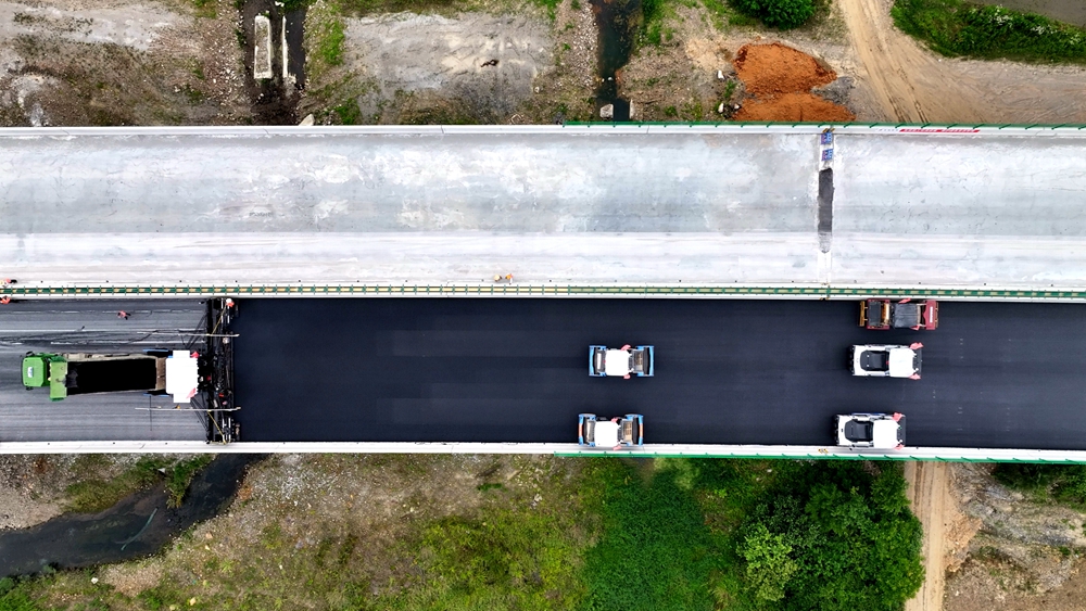 宣泾高速一期03标全线路面工程均采用无人驾驶摊铺碾压技术,通过集成毫米波雷达的三级制动系统,可以确保施工期间对障碍物的有效识别与即时响应,降低人为操作风险,并支持24小时不间断作业模式,每小时摊压长度超150米,能大幅提升施工速度,缩短工程周期。同时,该技术借助北斗卫星高精度定位,能够实现机群精确定位与路径规划,保持安全间距,保障摊压作业的一致性和表面平整度,显著提高路面压实度及整体工程质量标准。