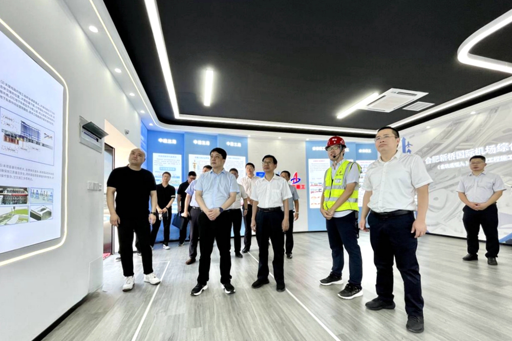 7月25日,安徽省住房和城乡建设厅工程质量安全监管处副处长黄峰带队赴公司承建的合肥新桥国际机场综合交通中心项目调研智慧工地应用情况,并就中国建造(安徽)工业互联网平台建设征求意见建议。集团党委委员、副总经理陈仁虎热情接待了黄峰一行。