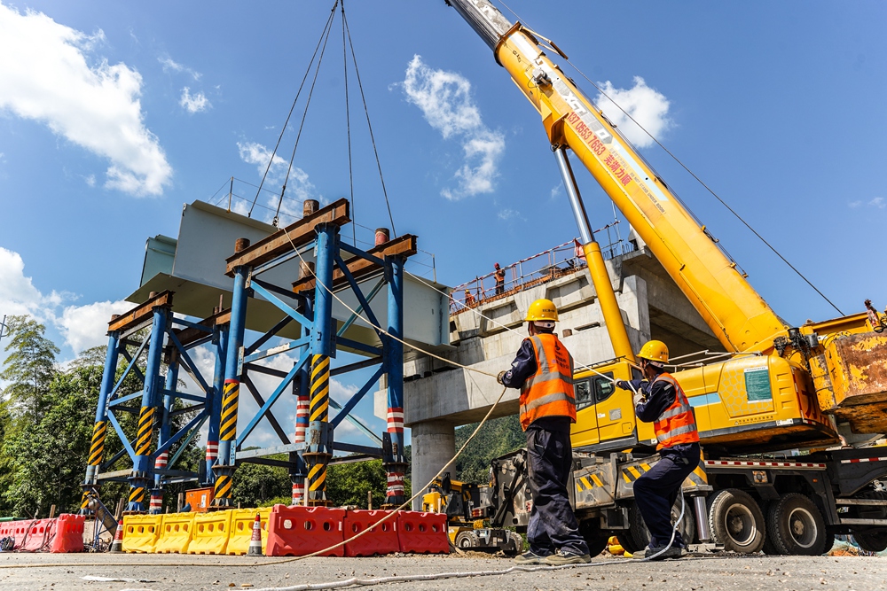 首件钢箱梁长11.4米,跨G205国道,涉路施工压力较大。施工过程中,项目积极对接当地交警等部门,做好交通导改,有效保障了钢箱梁安全架设。
