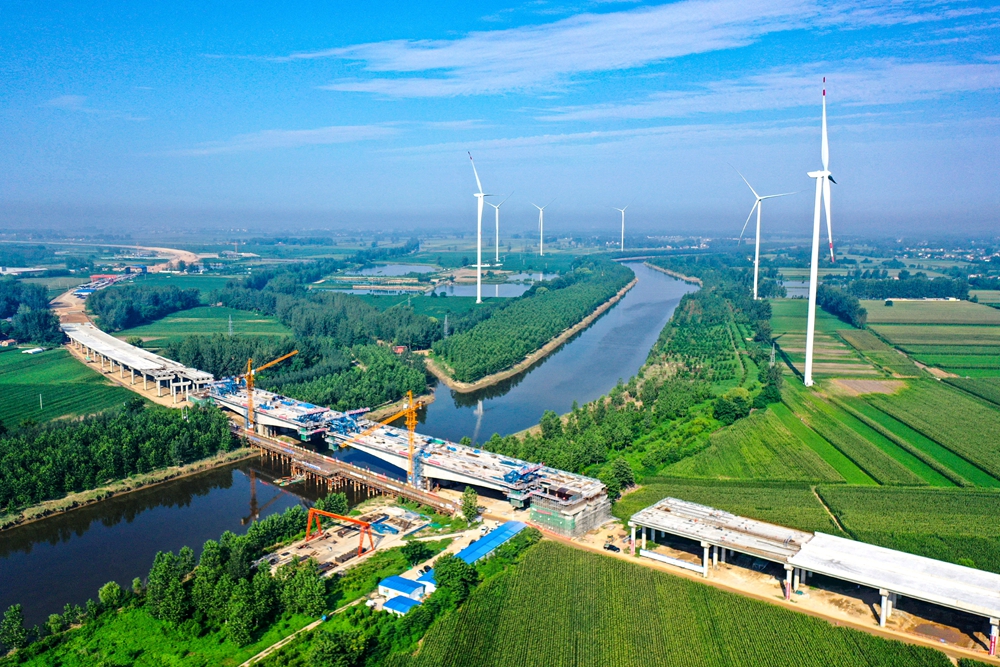 【名媒聚焦】淮北日报:徐淮阜高速淮北段沱河特大桥施工正酣