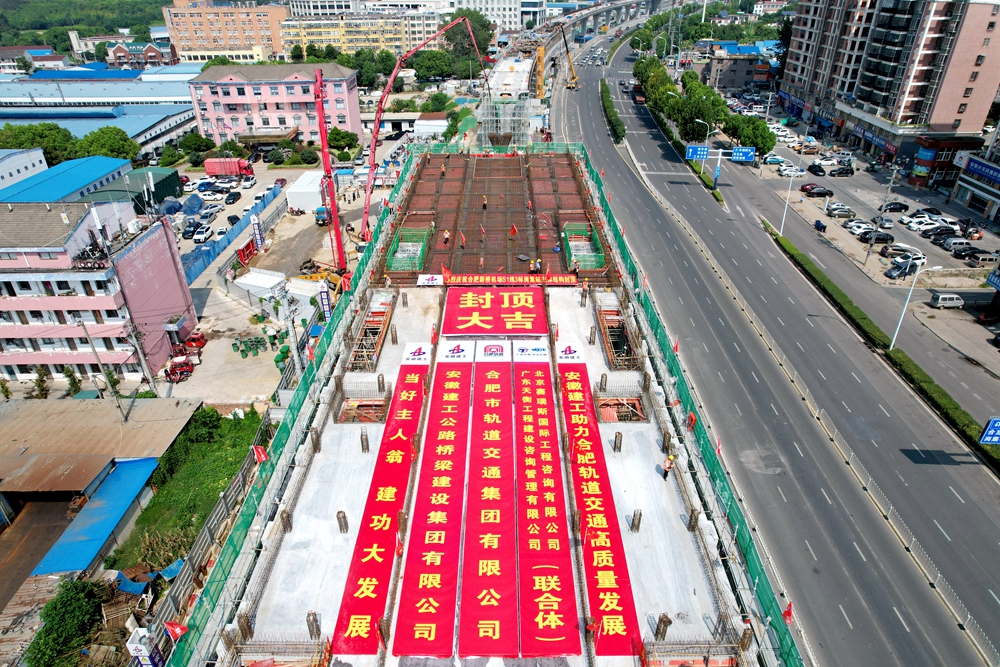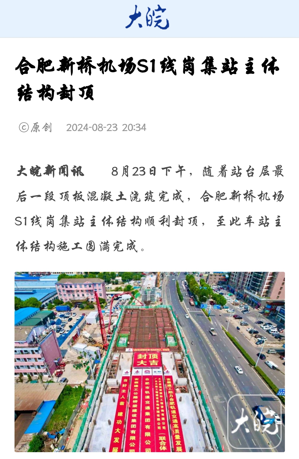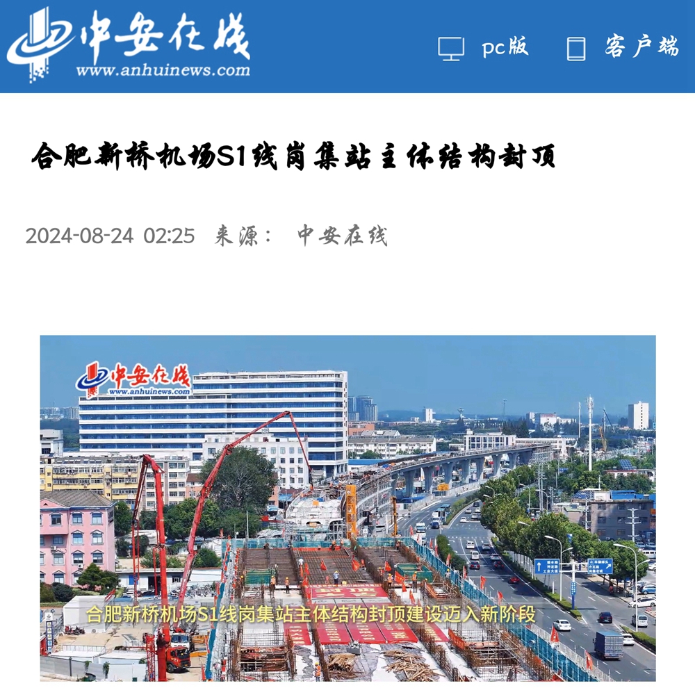【名媒聚焦】央广网、中安在线、安徽日报等主流媒体聚焦合肥新桥机场S1线项目岗集站主体结构封顶