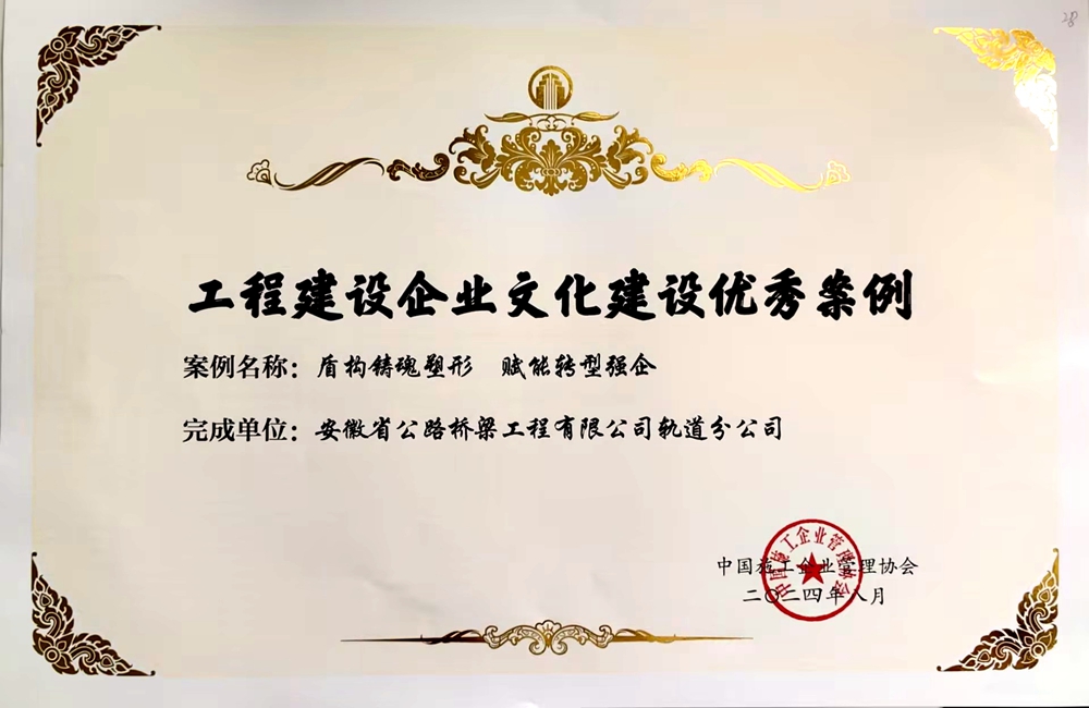 公司文化品牌入选2024年工程建设企业文化建设优秀案例 发布时间:2024年09月06日 来源:轨道分公司 发布人:党委组织部(人力资源部、党委宣传部) 作者:郗长旭 浏览:1944次 9月5日至6日,由中国企业施工管理协会主办的2024年工程建设企业文化建设成果交流会顺利举办,会上对2024年工程建设企业文化建设优秀案例进行表彰,公司子文化品牌成果《盾构铸魂塑形 赋能转型强企》成功入选。