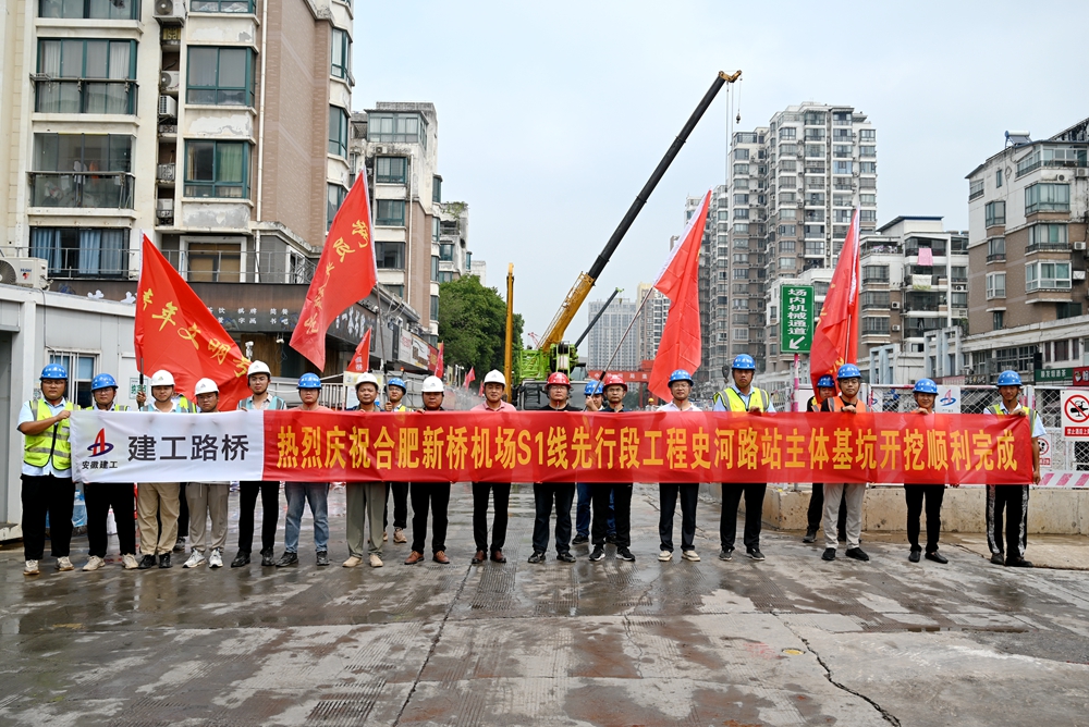 【路桥“竞”行时】合肥新桥机场S1线先行段项目史河路站主体结构基坑开挖完成